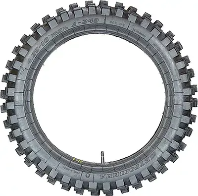 Мотоциклетная шина Петрошина Л-249 рассчитана на эксплуатацию вне дорог с твердым покрытием. Рекомендуется к применению в кроссовых байках. Отличается хорошей устойчивостью к поперечному проскальзыванию, интенсивностью разгона и торможения на мягких сыпучих грунтовых поверхностях.